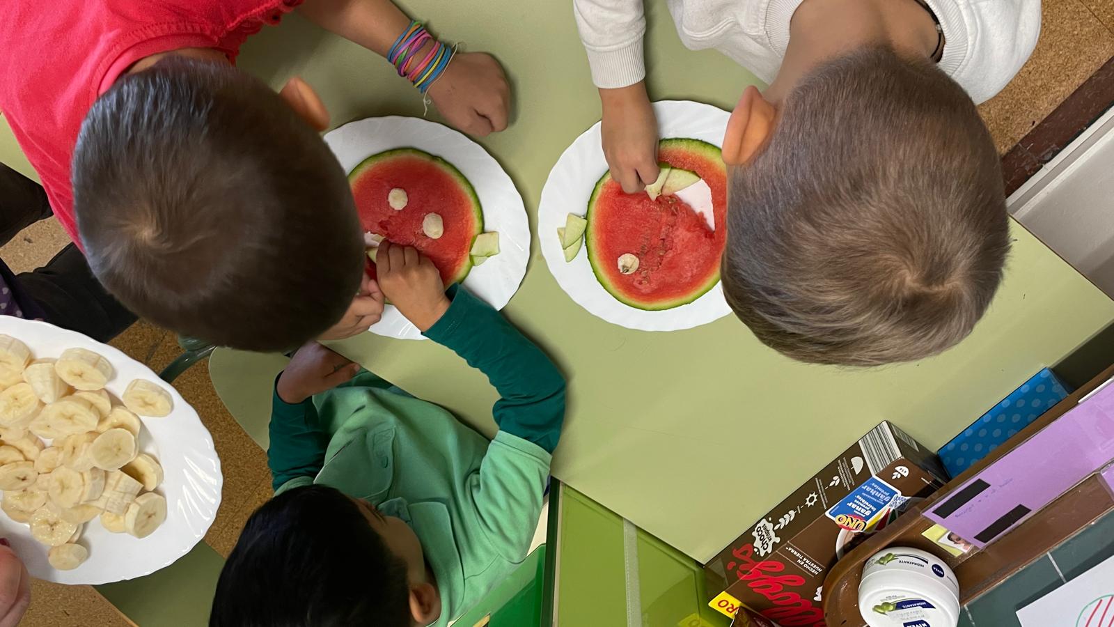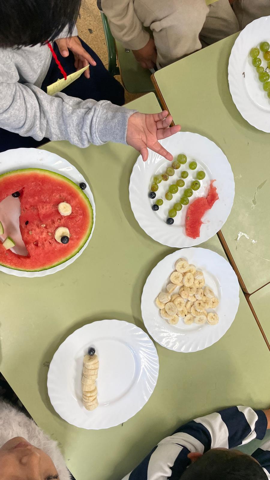 Este viernes 26 de septiembre la clase de 5 años nos hemos ido a la frutería del barrio y hemos vivido la experiencia de comprar fruta. Después hemos hecho figuras muy divertidas con las frutas y las hemos comido. ¡Qué ricas estaban!