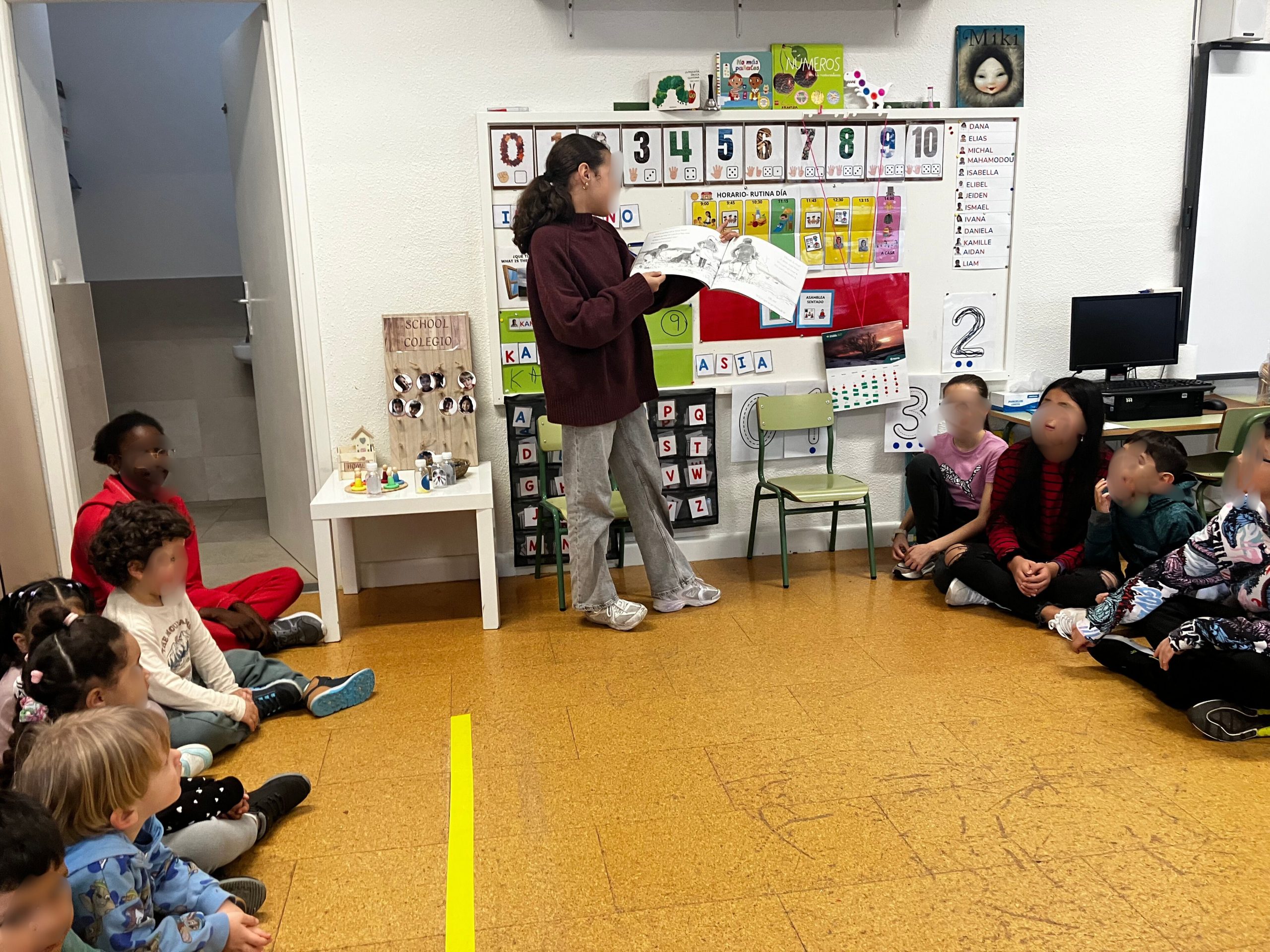 Durante la actividad, los mayores han guiado a los más pequeños en la interpretación de la historia, animándoles a participar con sonidos y gestos.Tras la lectura, llegó el momento de sacar las pinturas y la conexión fue total. La actividad se llenó de risas y creatividad compartida. Fue emocionante ver cómo los mayores se volcaban con los pequeños e incluso pedían quedarse más rato con ellos/as.