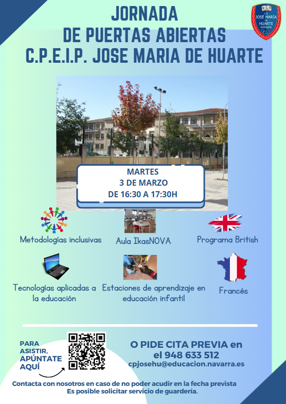 El día 3 de Marzo tendrá lugar la jornada de puertas abiertas para conocer el colegio.