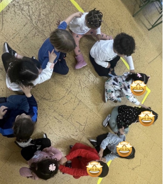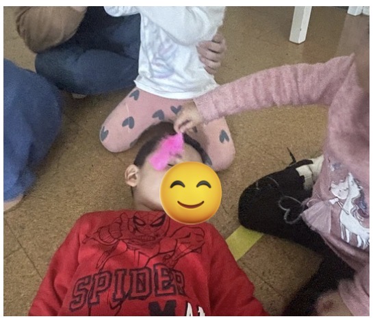 A los niños y niñas de tres años nos encanta relajarnos después del recreo. Nos gustan los masajes, las cosquillas con plumas, y también meditar SA TA NA MA….