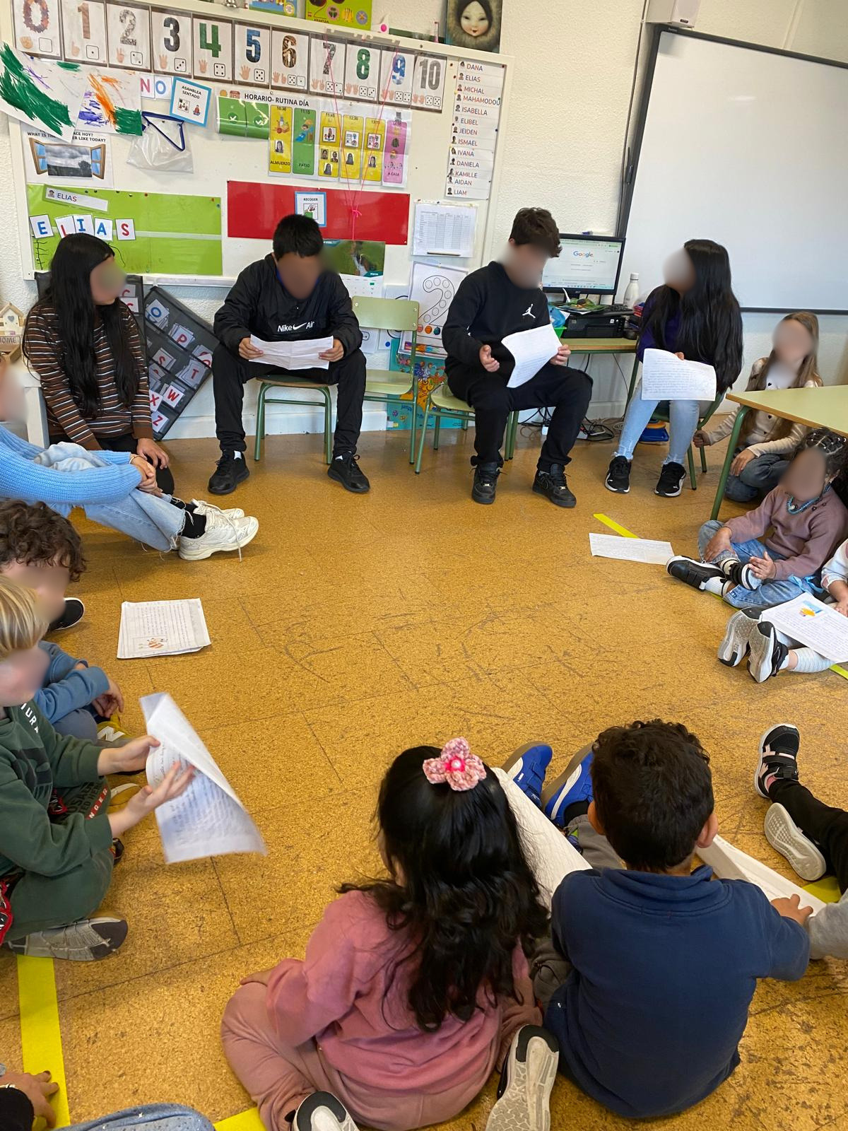Para esta actividad el alumnado de 6ºA trabajó durante dos de sus sesiones de lengua, los cuentos infantiles sobre valores, adaptando y creando cuentos dedicados especialmente a la sesión de Aulas Amigas para poder realizar la lectura de los mismos al alumnado de 3 años.